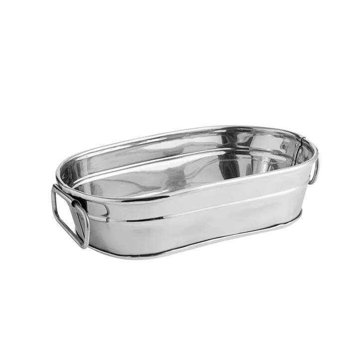 1 unidad 8 3/4" x 5 1/2" x 2 1/2" Tina metálica ovalada de acero inoxidable American Metalcraft
