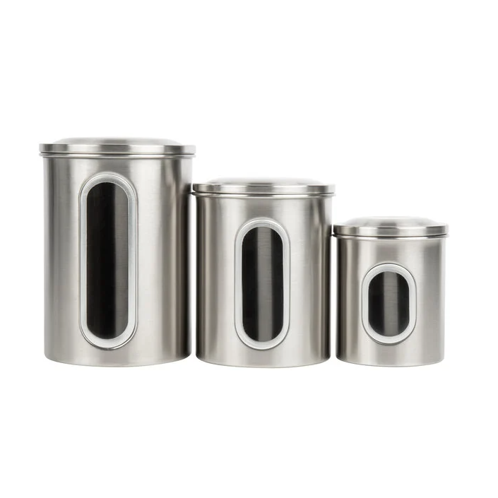 Juego de 3 recipientes para almacenar ingredientes de acero inoxidable