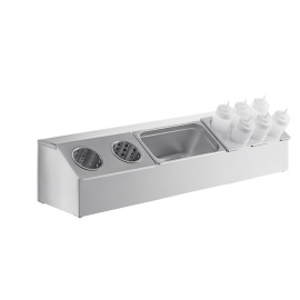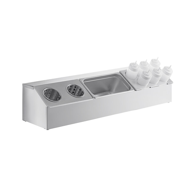 Compartimiento de 2 sartenes de 1/3, 2 cilindros para cubiertos, y 6 botellas flexibles