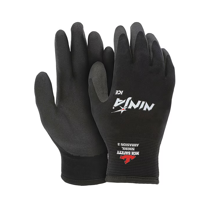 12 pares L (9) Guantes de trabajo aislantes Ninja Ice, calibre 15, palma y puntas de los dedos recubiertas, negros