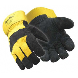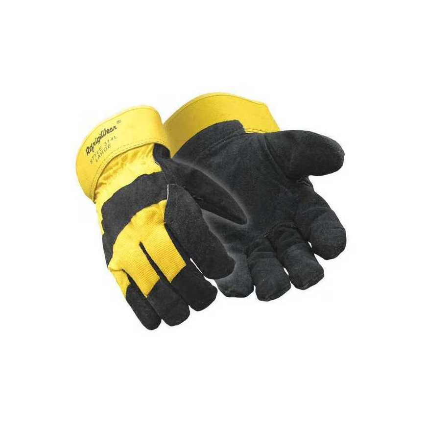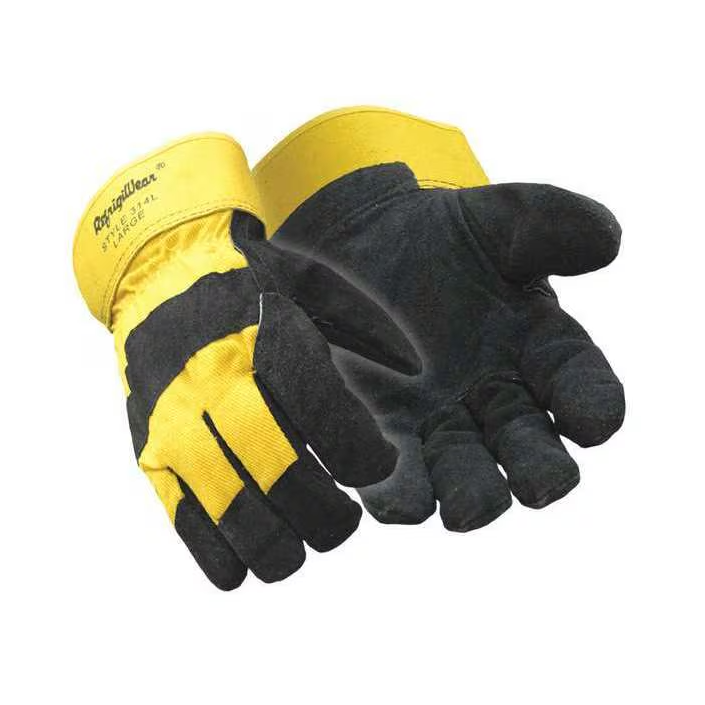 Guantes de protección contra el frío, palma de cuero de vaca de gamuza, puño tipo guantelete, negro/amarillo,