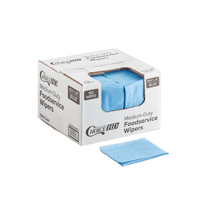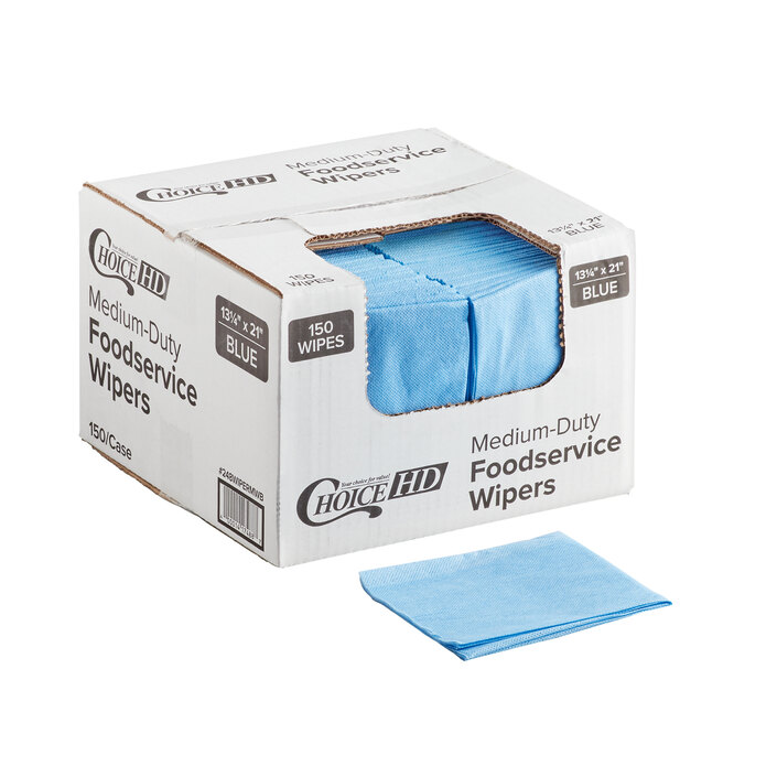 150 unidades por caja 13-1/2" x 21" Paño de limpieza para servicio de alimentos de uso mediano, color azul