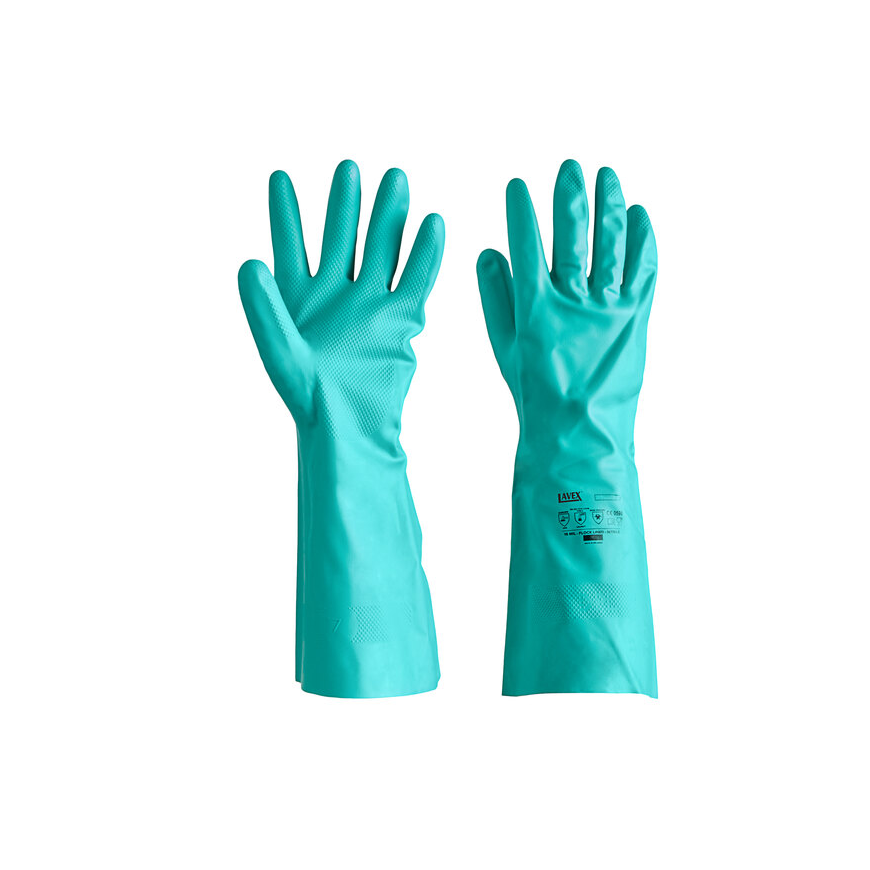 12 pares 13" Guantes de nitrilo Lavex verdes talla L con forro flocado