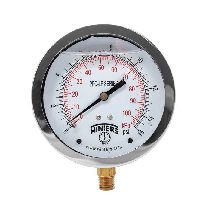 0 a 15 psi 4" manómetro industrial con glicerina 1/4" NPT inferior Winters
