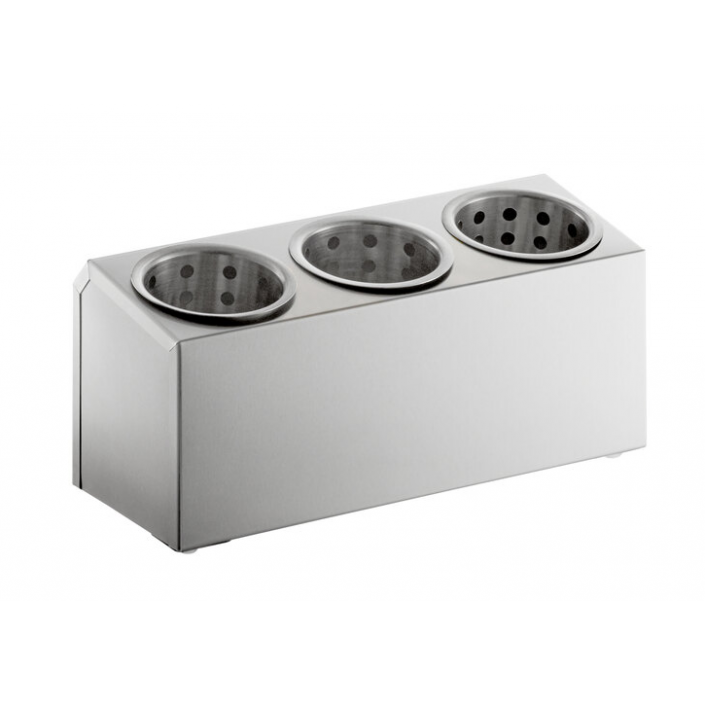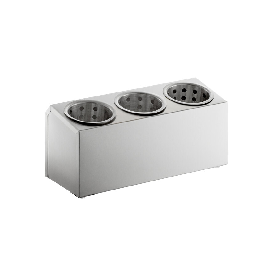 Organizador de cubiertos de acero inoxidable de tres orificios con cilindros perforados