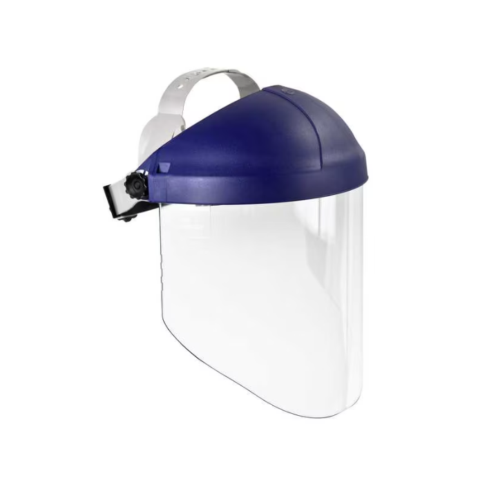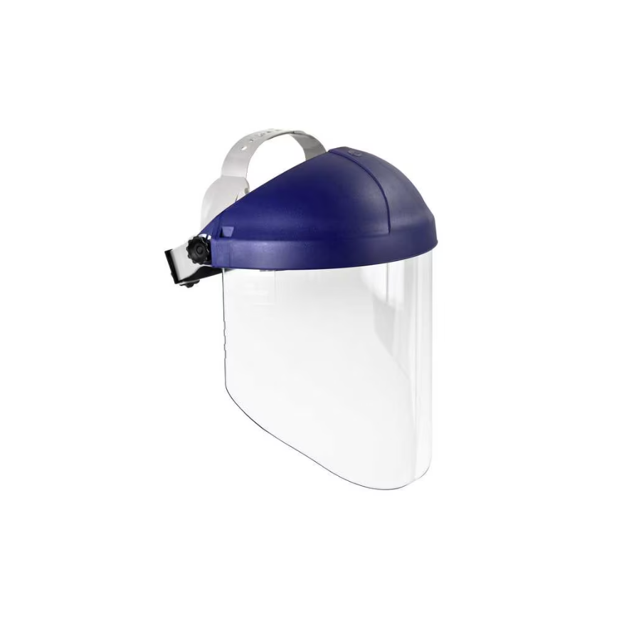 9" azul visera Casco Ratchet con protector facial de policarbonato transparente, sin recubrimiento 3M