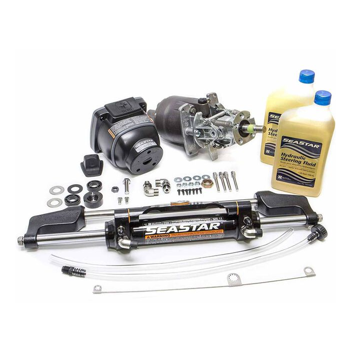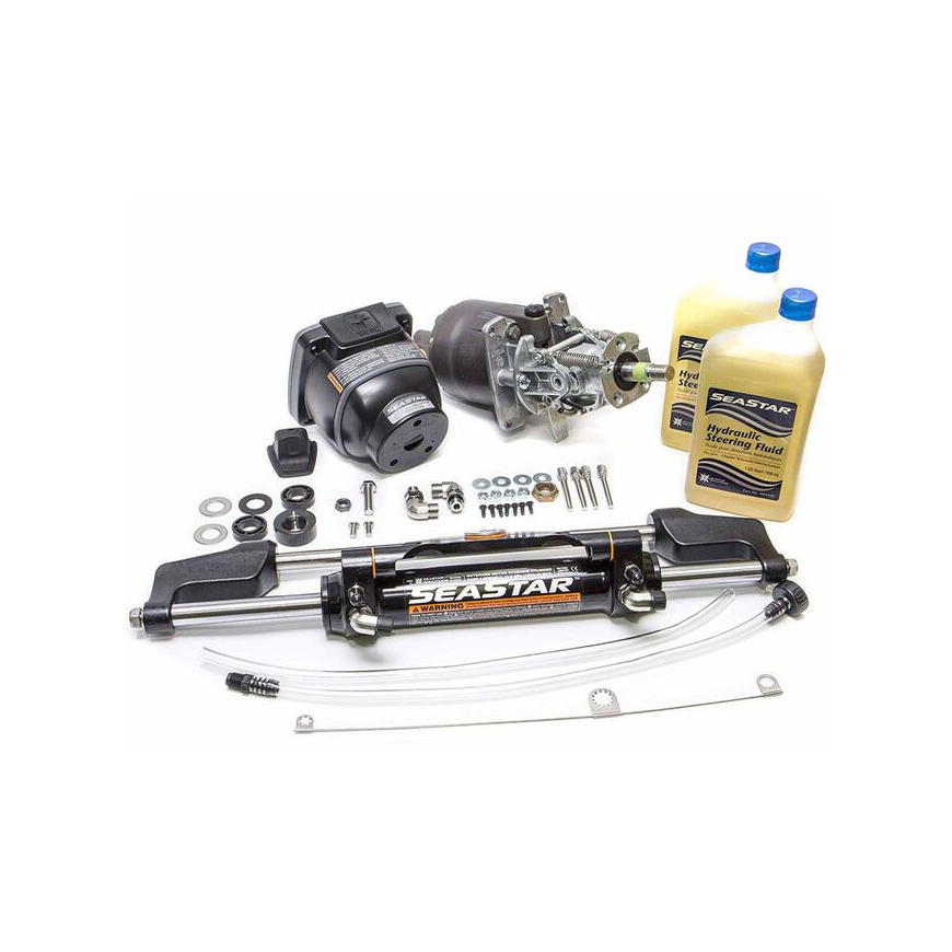 Timón inclinable compacto Seastar, cilindro pivotante más líquido de dirección hidráulica y kit de llenado, Eje de dirección cónico de 3/4", 5 vueltas de tope a tope