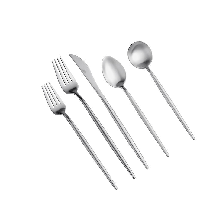 12 personas (paquete de 60) Juego de cubiertos forjados extrapesados de acero inoxidable cepillado Acopa Odin 18/8