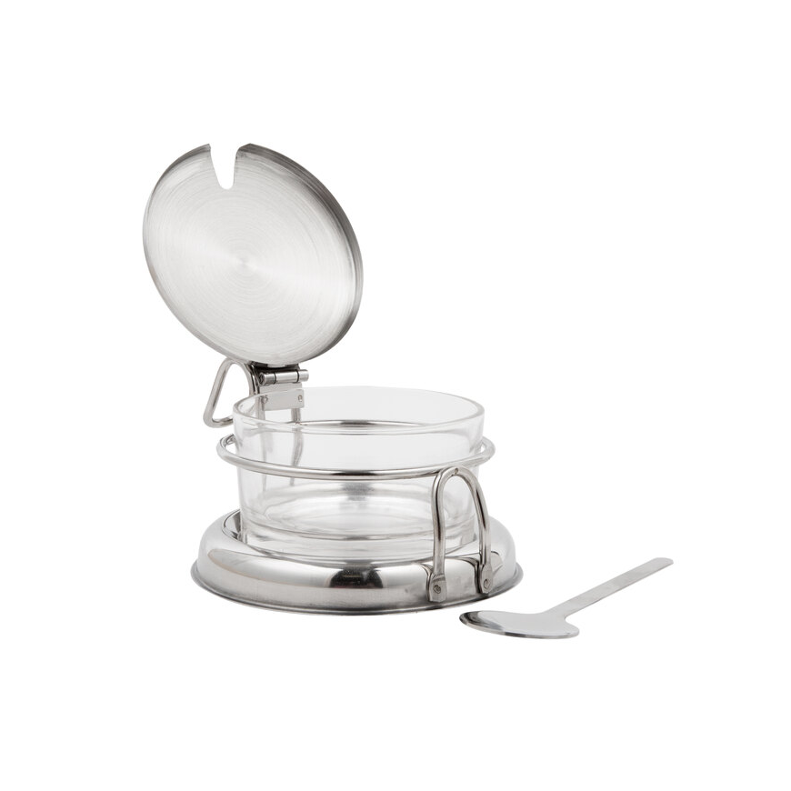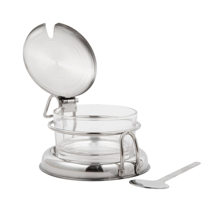 6 OZ Tarro de vidrio para condimentos con soporte, tapa y cuchara TableCraft